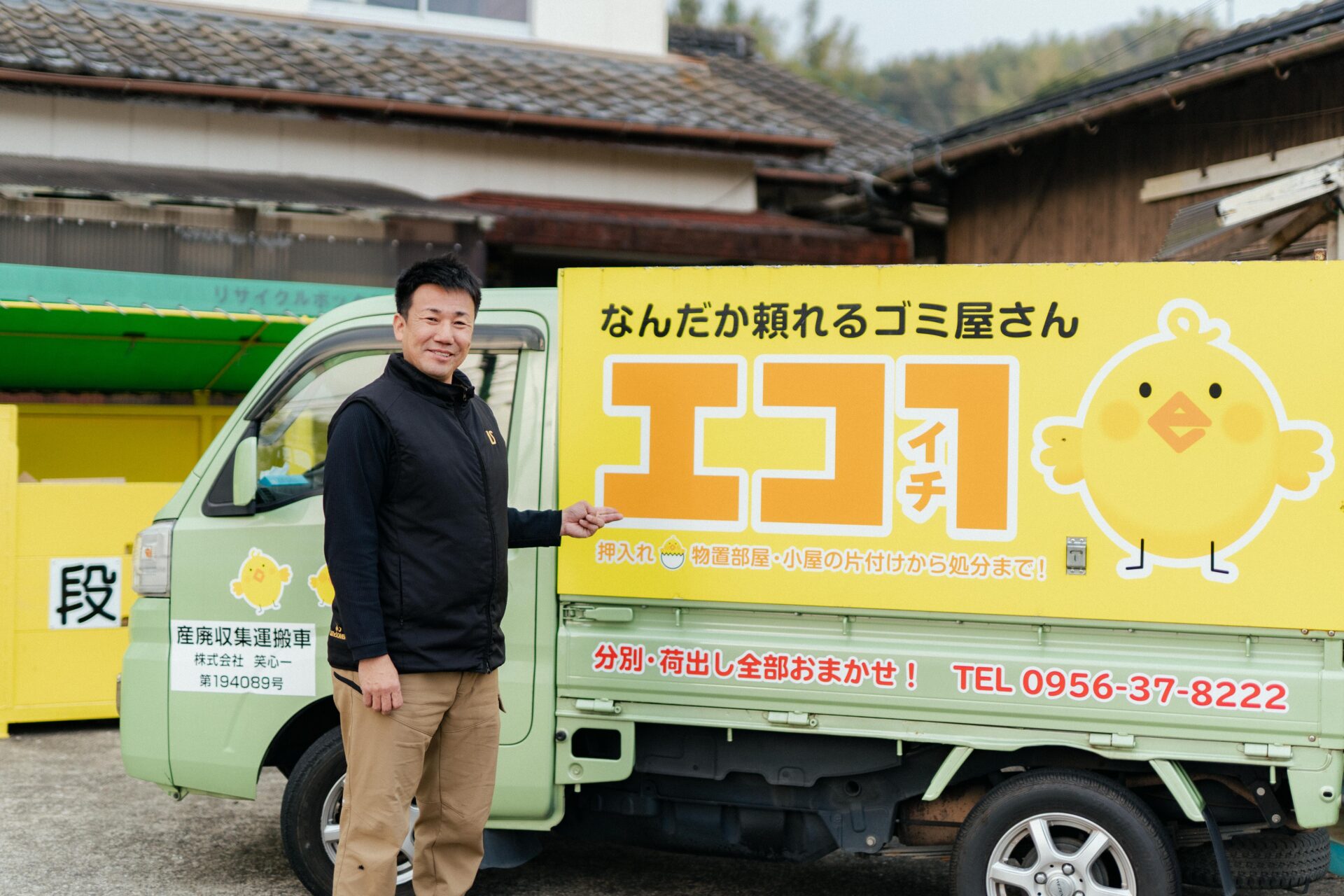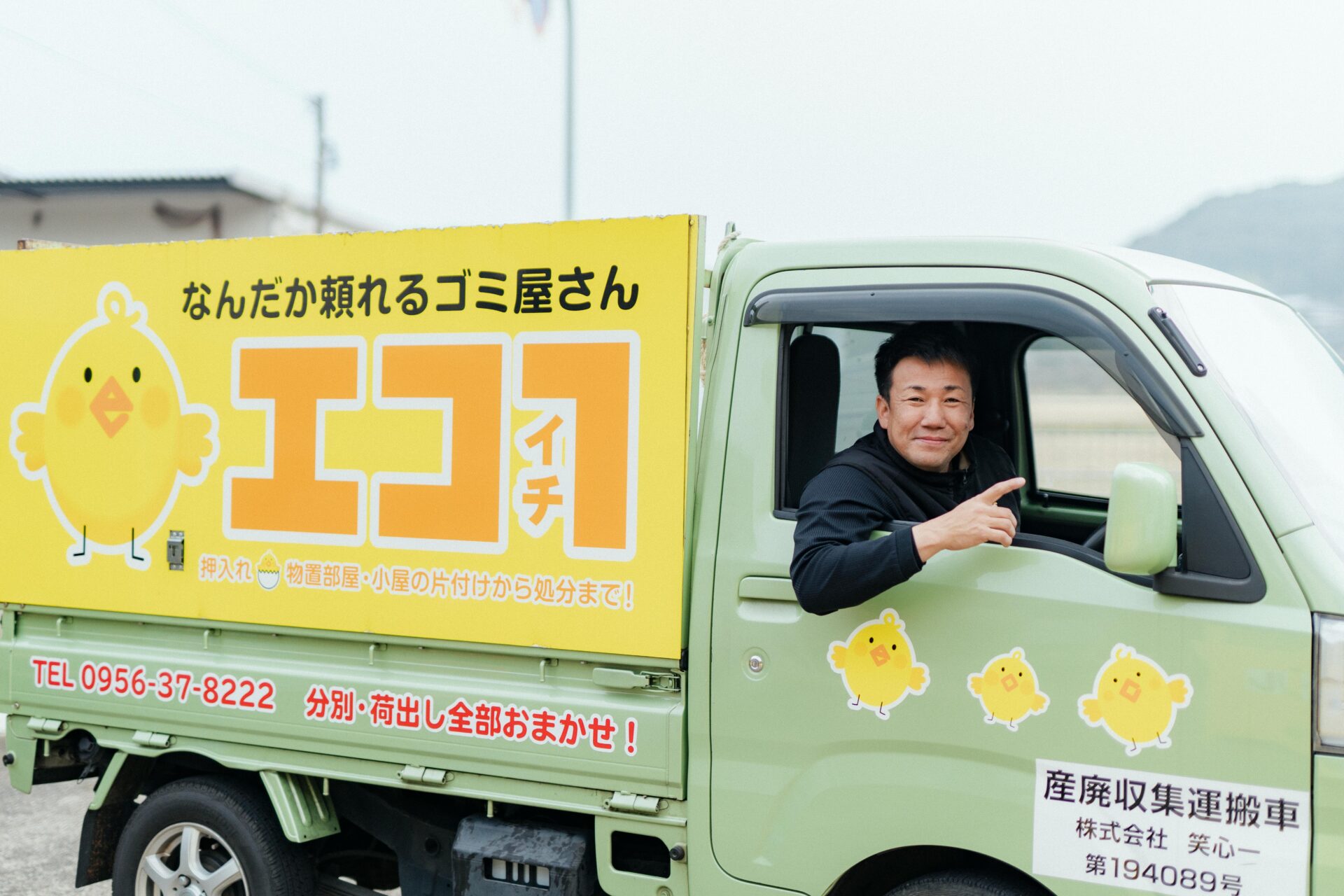 佐世保市を拠点に、遺品整理から産業廃棄物の回収、引っ越し、さらには草刈りまで幅広く住まいの”困った”を丸ごと引き受ける「株式会社笑心一(エコイチ)」。 ホームページのトップには、「なんだか頼れるゴミ屋さん」という、少し変わったキャッチコピーが掲げられている。
